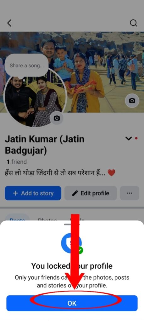 स्टेप 6: स्क्रीन पर “You Locked Your Profile” मैसेज आएगा, यहाँ OK दबा दें।