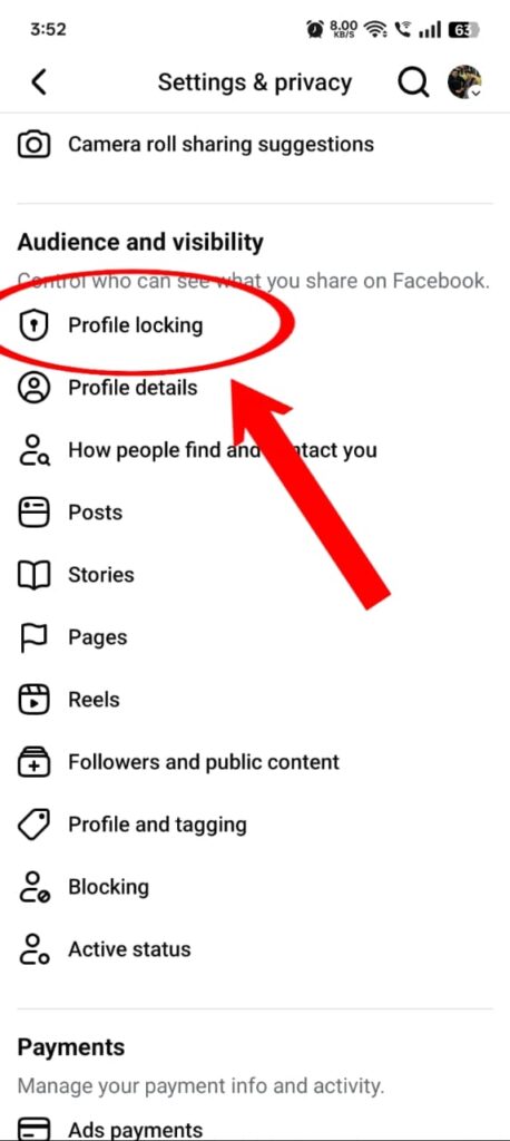 स्टेप 4: सेटिंग पेज में “Profile Locking” का विकल्प ढूँढें और उस पर क्लिक करें।